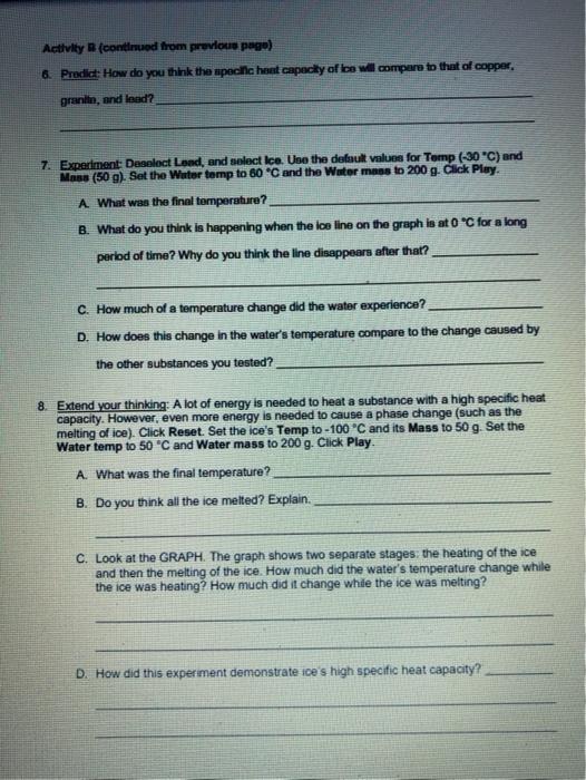 Calorimetry Lab Gizmo Answers Activity C / Do Gizmos come with an answer key? - paperwingrvice.web ... - You will use the calorimetry lab gizmo™ to determine the specific heat capacities of various substances.